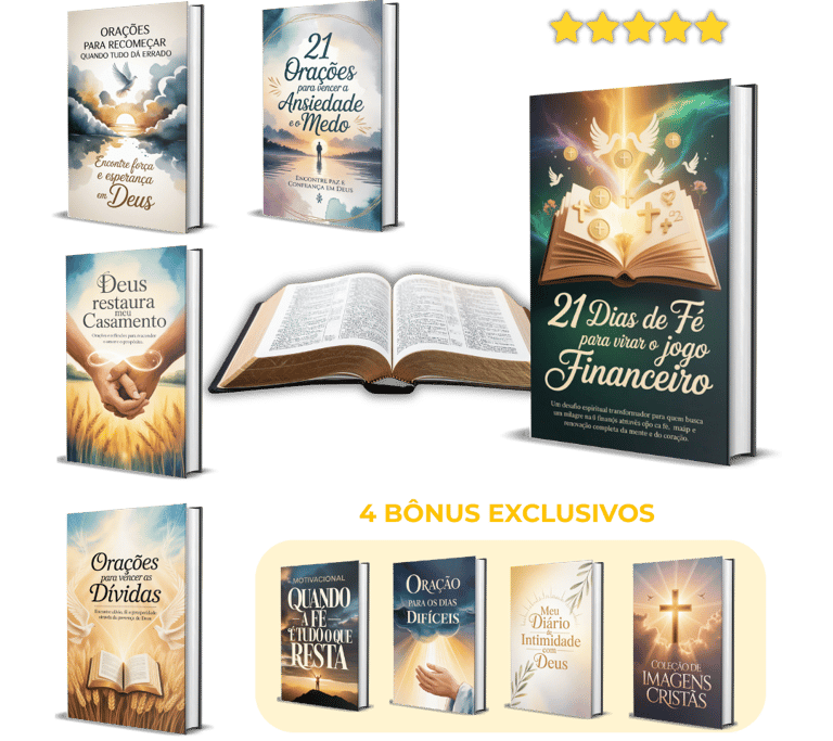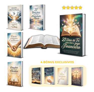 Ao adquirir a Coleção TRANSFORMAÇÃO PELA FÉ hoje, receberá completamente GRÁTIS esses 4 BÔNUS EXCLUSIVOS que complementam a coleção.
